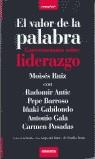 En El valor de la palabra hablan grandes líderes del mundo de la cultura, del fútbol, de los medios de comunicación, y empresarios:Carmen Posadas, Antonio Gala, Pepe Barroso, Radomir Antic e Iñaki Gabilondo. Es un libro de conversaciones en el que el autor destaca el liderazgo de todos ellos a través de su experiencia profesional y vital.Los distintos protagonistas de esta obra aportan una novedosa perspectiva sobre los distintos estilos de liderazgo resultando un libro ameno, rico y emocionante.