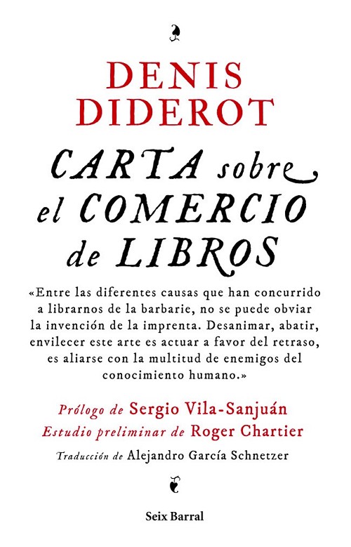 La Carta sobre el comercio de libros es un ensayo breve escrito por Denis Diderot a petición de los libreros parisinos en 1763. La finalidad de la obra era presentar ante las autoridades de la época una defensa del gremio contra los prejuicios y restricciones de su comercio. Pero el texto se convierte en mucho más que eso, y su discurso cobra una asombrosa vigencia: una lúcida crítica contra la censura del Estado y un alegato a favor de la propiedad intelectual. En el actual contexto de incertidumbre respecto al futuro del libro, la irrupción de lo digital, las amenazas a la propiedad intelectual y la crisis que se cierne sobre el sector, éste es un texto necesario para todos los amantes de la literatura: libreros, escritores, editores y lectores en general.
