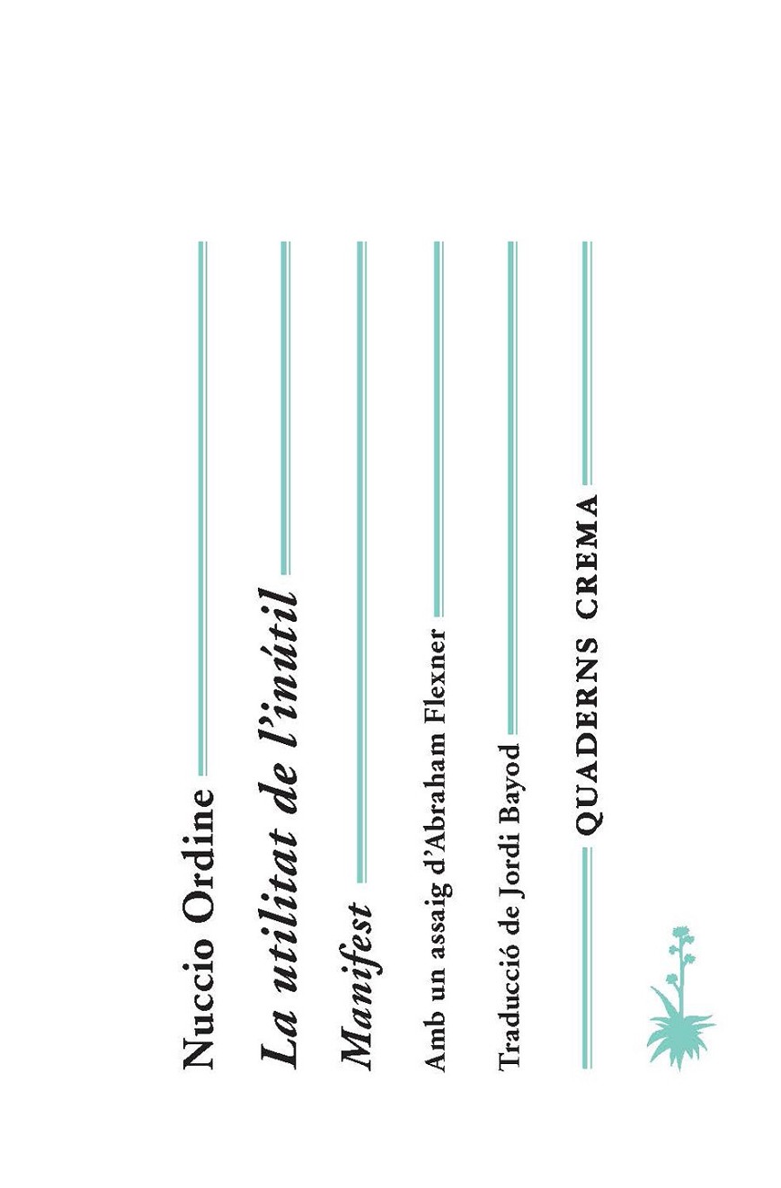 «Alguns impenitents agraïm a Nuccio Ordine el seu manifest La utilitat de l?inútil on repassa les opinions de filòsofs i escriptors sobre la importància de seguir tutelant en escoles i universitats aquest afany de saber i d?indagar sense objectiu immediat pràctic en què tradicionalment s?ha basat la dignitas hominis». Fernando Savater