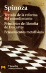 El presente volumen reúne tres breves pero importantes tratados de SPINOZA (1632-1677). El TRATADO DE LA REFORMA DEL ENTENDIMIENTO es un escrito de juventud en el que el filósofo expone la concepción de su método, cuya lógica se ejercitará sin discutirse explícitamente en la «Ética» (H 4404). El segundo tratado, los PRINCIPIOS DE FILOSOFÍA DE DESCARTES, es un comentario a los Principios de ese autor, cuya filosofía era entonces de candente actualidad. A pesar de presentarse como un aparente comentario o resumen de la misma, le valió ser tildado de ateísmo, acusación frecuentemente esgrimida contra el propio cartesianismo. Finalmente, los PENSAMIENTOS METAFÍSICOS constituyen un compendio magistral de las cuestiones más difíciles de la metafísica escolástica en torno al problema de qué es el ser y, dado que hay dos tipos, sobre las relaciones entre el necesario (Dios) y el contingente (las criaturas). La presente edición ha sido rigurosamente revisada y actualizada por su preparador, Atilano Domínguez Basalo.