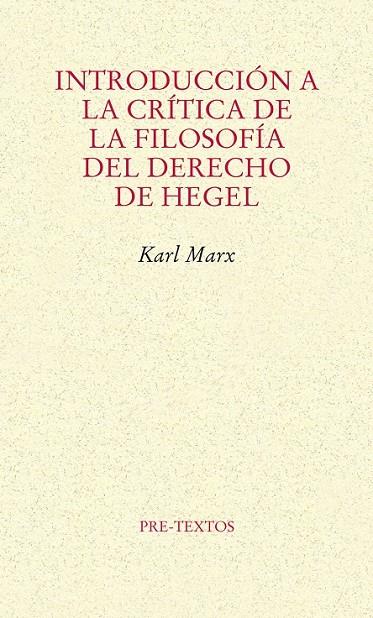 El texto de Marx que aquí presentamos, la Introducción a la crítica de la filosofía del derecho de Hegel, atesora, en sus breves páginas, los suficientes méritos para ser considerado una de las obras más interesantes de su autor. Hasta donde se nos alcanza, este texto no había sido publicado nunca d...