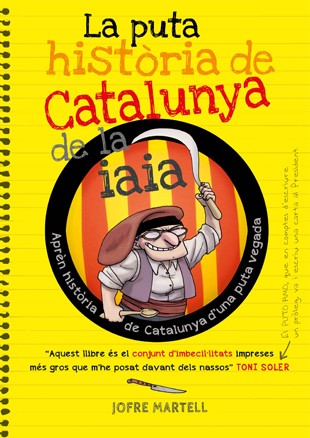 "Aquests joves d'avui en dia no sabien ni cardar un ou ferrat fins que vaig escriure el llibre de les putes receptes. Sí, ara ja saben cuinar però estan tan empanats que no tenen ni puta idea d'història de Catalunya. Ni Guifré el Pilós, ni el Felip de Can Felip, ni el timbaler del Bruc, ni la mare que els va parir. Re, no en tenen ni idea! I qui els hi ha d'explicar? Au, servidora, que ja hi era quan els romans van fundar Tarraco, no et fot! Bueno, què hi farem, Catalunya em necessita. Però primer deixeu-me anar a tancar el foc, que encara se'm cremaran les llenties, cagontot!"