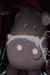 Libro-juguete de tela con forma de simpático hipopótamo... ¡que emite un sonido al apretarlo!