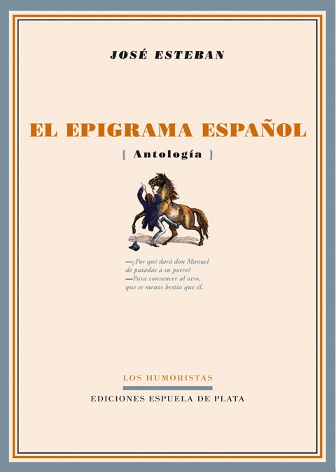 Como auténtico género literario, el epigrama nace con la literatura y vive y se desarrolla adherido a ella como una verdadera planta parasitaria. Cuando la literatura florece, el epigrama está en auge; decae y degenera con la decadencia y degeneración de la literatura. Flor de antología, asoma en los tiempos de la cultura helénica; es cultivado con ardor en la roma de nuestro Marcial y da sus primeros vagidos con las literaturas neolatinas. Nuestra literatura tiene propensión al epigrama desde sus primeros pasos. Hurtado de Mendoza y Cristóbal de Castillejo ya lo manejan con soltura; cultívalo, luego, fervorosamente, Baltasar del Alcázar; Bartolomé Leonardo de Argensola y Polo de Medina lo embellecen y le dan carta de naturaleza&; Lope de Vega y Quevedo le ponen ya sobre el hombro la etiqueta gloriosa y le connaturalizan entre los géneros literarios excelsos. El Siglo de Oro, de estilo almidonado y enrevesado en su gran parte, fue sin embargo propicio al florecimiento del epigrama. Pero es en el siglo XVIII cuando el epigrama se propaga y cultiva por casi todos los poetas. Don Juan de Iriarte, Martínez de la Rosa y los Moratines son maestros del género. Durante toda nuestra historia literaria, el epigrama ha sido siempre claro, sencillo y elegante y definido por Iglesias de la Casa con admirable fórmula epigramática: A la abeja semejante/ para que cause placer,/ el epigrama ha de ser/ pequeño, dulce y punzante. La presente antología viene a llenar un vacío. Desde hace muchos, demasiados años, el epigrama ha estado olvidado de los críticos e historiadores literarios. José Esteban, con El Epigrama español, viene, aparte de a rellenar un vacío literario, a aumentar su colaboración en el catálogo de Ediciones Espuela de Plata. A El Epigrama español le han precedido títulos como Vituperio (y algún elogio) de la errata (2002), ¡Judas! ¡Hi... de puta! Insultos y animadversión entre españoles (2003), y Las mil y una palabras de casa de putas (2005). Autor de más de veinte libros, repartidos en casi todos los géneros literarios, la dispersión y la curiosidad pueden considerarse sus dos grandes virtudes o, acaso, sus dos grandes defectos. Virtudes o defectos que brillan o ensombrecen, en su caso, El Epigrama español. Próximos a aparecer, Escarceos periodísticos, antología que recoge artículos, ensayos y cuentos aparecidos en revistas y periódicos españoles, y Breve diccionario de ventas, mesones, vinos, comida, maritornes y arrieros en tiempo de Cervantes.