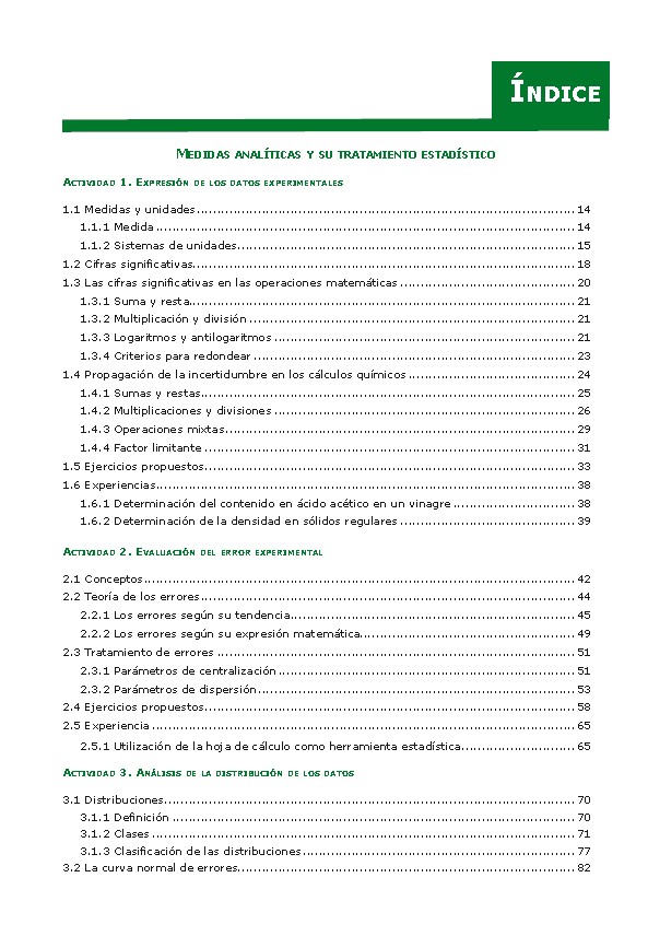 Agotada la edición del libro Estadística Aplicada al Laboratorio y ante la reforma de ciclos formativos, provocada por la actual Ley Orgánica de Educación (LOE), los autores nos presentan esta nueva publicación que da respuesta al módulo profesional de Calidad y Seguridad en el laboratorio lo que se refiere a la unidad formativa de Tratamiento de los resultados analíticos.