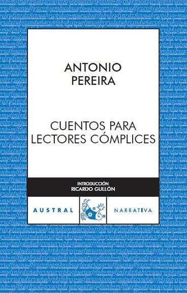El nombre de Antonio Pereira (Villafranca del Bierzo, 1923) aparece con frecuencia unido al cuento literario actual, y ello sin menoscabo de su condición de poeta y autor de novelas. Ya por los años sesenta habían sido premiados sus relatos con Leopoldo Alas, y en 1989 la Real Academia Española le otorgó el premio Fastenrath por su libro El síndrome de Estocolmo. Bajo el intencionado título de "Cuentos para lectores cómplices," el escritor recoge -revisados más o menos sustancialmente- sus libros Los brazos de la i griega y El ingeniero Balboa y otra historias civiles, junto a varias piezas que él mismo califica de varia (y dudosa) lección. En la introducción, Ricardo Gullón hace un magistral estudio del cuento en general, para referirse luego a la obra de Pereira, un autor que ha logrado -dice el profesor- dominar el arte de la narración breve con una destreza no inferior a la de sus coetáneos mejores.