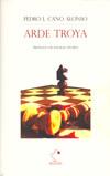 Arde Troya no es una epopeya, ni su parodia, sino un relato antiépico, que esconde el espanto bajo la sonrisa. Es un combinado libre de epítome ?o reelaboración resumida de un texto para facilitar su lectura- y contaminación ?o intercalado de materiales nuevos o procedentes de fuentes diversas-, a partir de La Ilíada de Homero. En ella Cano relata la historia desde el punto de vista de un admirador del gran Homero, que ha decidido leerlo una vez más, pero ésta, en el siglo XXI, sentado con una taza de café en la mano, y no, como se suele, de rodillas en un reclinatorio; sin disimular la fascinación por los fundamentos de la literatura europea, pero tampoco el horror por las historias que se cuentan y sus temibles personajes.