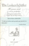 Else Lasker-Schüler (1869-1945), poeta expresionista, considerada por Benn- con quien mantuvo una apasionada relación sentimental que la llevara a vigilarlo en los cafés de Berlín, y que inspirara algunos de sus más bellos poemas- como ?la lírica más grande que jamás tuvo Alemania?. Su religiosidad de origen judío y su condición de mujer, destacan como los dos elementos centrales de su obra poética, en la que aúna intimismo vitalista y simbolismo religioso.