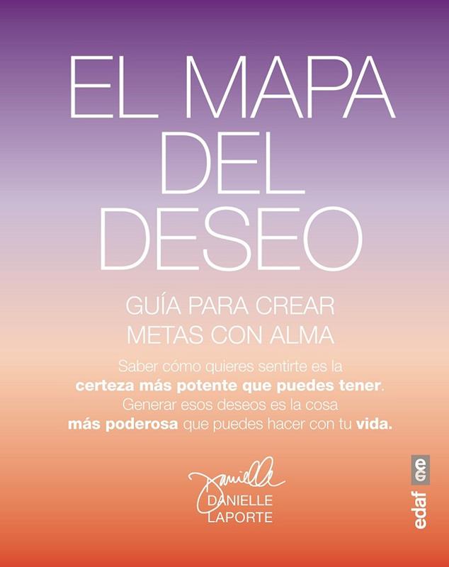 A la hora de marcarnos metas y objetivos, de plantearnos nuevos propósitos, seguimos procedimientos invertidos. Es decir, por regla general, primero elaboramos nuestras listas de propósitos, deseos y planes ?todo lo que queremos tener, conseguir, lograr y experimentar- y nos ponemos a trabajar con todas nuestras fuerzas para conseguirlo. Esas aspiraciones son conducidas por un deseo innato de sentirnos de una determinada forma. Entonces, ¿qué sucede si cambiamos el orden y primero tenemos claro cómo queremos sentirnos y en función de ello diseñamos nuestro mapa interior de emociones y deseos y elaboramos esa lista de cosas por hacer, ( jando nuestras metas? Cuando tienes realmente claro cómo quieres sentirte, la persecución de cualquier meta se volverá más satisfactoria, evitando tirar la toalla. Gracias a El mapa del deseo, de la mano de la terapeuta Danielle Laporte, conseguirás: ? Aprender a crear tu propio mapa de deseos y tener claro cuáles son sus sentimientos esenciales, para diseñar tu vida y tomar decisiones en función de lo que te hace feliz. ? Descubrir el anhelo que realmente siente tu corazón ?tus sentimientos esenciales deseados. ? Guiarte por tus sentimientos para que tomes decisiones adecuadas y ser más consciente de lo que vives y cómo lo vives. ? Ayudarte a potenciar los aspectos positivos de tu vida, mientras sigues respetando, y no invalidando, las partes negativas que quieres cambiar.