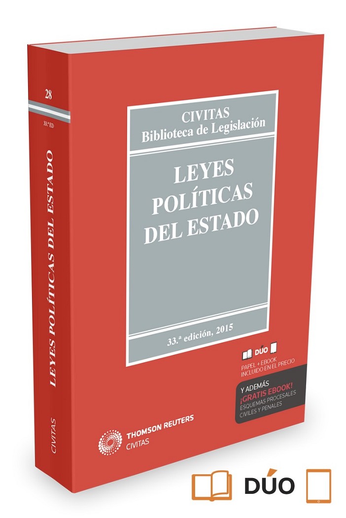 Constitución Española Ley Orgánica del Tribunal Constitucional Desarrollo de los derechos y libertades -?Ley Orgánica sobre derechos y libertades de los extranjeros en España y su integración social.-?Ley reguladora del derecho de asilo y de la protección subsidiaria. -?Ley Orgánica para la igualdad efectiva de mujeres y hombres. -?Ley Orgánica reguladora del procedimiento de «Habeas Corpus». -?Ley Orgánica reguladora del derecho de rectificación. -?Ley Orgánica reguladora del derecho a la educación. -?Ley Orgánica de libertad sindical. -?Ley de la radio y la televisión de titularidad estatal. -?Ley General de la Comunicación Audiovisual. Textos internacionales en materia de derechos y libertades - Declaración Universal de los Derechos Humanos. - Pacto Internacional de Derechos Civiles y Políticos y Protocolos Facultativos. - Pacto Internacional de Derechos Económicos, Sociales y Culturales, y Protocolo Facultativo. - Convenio para la Protección de los Derechos Humanos y de las Libertades Fundamentales. - Carta Social Europea. Garantías y suspensión de los derechos -?Tutela preferente y sumaria de los derechos fundamentales. -?Ley Orgánica del Defensor del Pueblo. -?Ley de Enjuiciamiento Criminal. Participación política y régimen electoral -?Ley Orgánica de Partidos Políticos. -?Ley Orgánica del Régimen Electoral General. -?Ley Orgánica sobre Financiación de los Partidos Políticos. Instituciones Centrales del Estado -?Reglamento del Congreso de los Diputados. -?Texto refundido del Reglamento del Senado. -?Ley Orgánica del Consejo de Estado. -?Ley Orgánica de la Defensa Nacional. Completa este volumen un extenso índice analítico.
