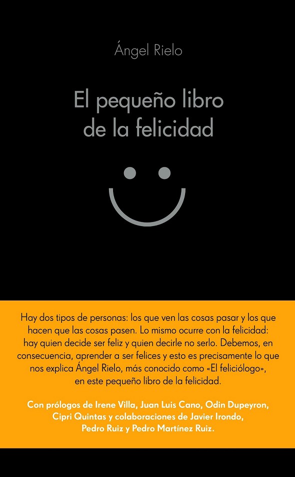 Hay dos tipos de personas: las que ven las cosas pasar y las que hacen que las cosas pasen. Lo mismo ocurre con la felicidad: hay quien decide ser feliz y quien decide no serlo. La felicidad no es un don sobrenatural, un bien del que solo pueden disfrutar unos pocos privilegiados. Existen determinadas actitudes y predisposiciones mentales que alimentan la felicidad, y cultivarlas está al alcance de todos, como demuestra en este libro el cómico y guionista Ángel Rielo. Cuando el mal humor, la agresividad y la ley del más ladrador imperan, cuando la gente va por el mundo con cara de perro, este pequeño manual hace bandera de todo lo contrario: el positivismo, el optimismo y la alegría pueden lograr grandes transformaciones, empezando por nosotros mismos. Un libro que combina teoría y práctica, datos y anécdotas ¡para que te conviertas en todo un feliciólogo!