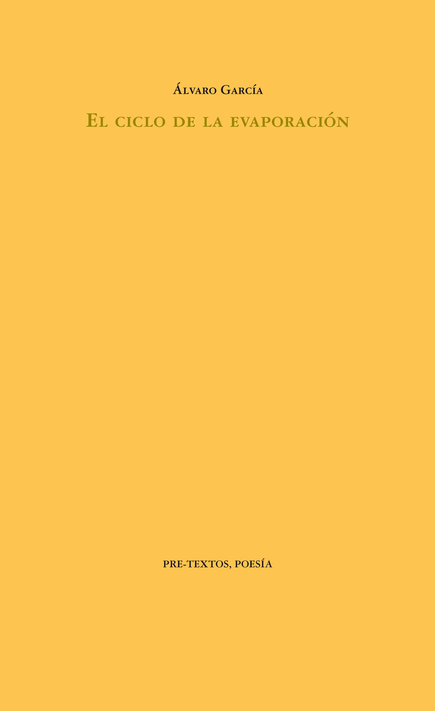 Álvaro García (Málaga, 1965) es doctor en Teoría de la Literatura, traductor de Atwood, Auden, Eliot, Ferlinghetti, Larkin, Edward Lear, Ruth Padel, Shakespeare y Kenneth White y autor del ensayo Poesía sin estatua (Pre-Textos, 2005). Tras los libros de poemas Intemperie (Pre-Textos, 1995) y Para lo que no existe (Pre-Textos, 1999), El ciclo de la evaporación es la versión íntegra final de la secuencia que recorre Caída (Pre-Textos, 2002), El río de agua (Pre-Textos, 2005), Canción en blanco (Visor/Fundación Loewe, 2012) y Ser sin sitio (Vandalia, 2014). No ?recopilación? de estos poemas más extensos, sino su secuencia en progreso a lo largo de quince años y así prevista desde la primera pieza, enhebra intimidad del hombre y rumor de la tragedia del ser humano filtrada en el texto a través de signos históricos reconocibles, configurando un poema grande de amor contemporáneo. ?La culminación de un ciclo ambicioso y una trayectoria exigente. Una poesía a la vez densa y transparente, misteriosa y reveladora? (LUIS GARCÍA JAMBRINA, ABC Cultural) ?Algo nada frecuente entre nosotros, un poema largo, unitario, realzado por ciertos brotes visionarios y una honda potencia lírica en el tratamiento del tema amoroso? (VICENTE MOLINA FOIX, Tiempo) ?Tiene algo de adictivo. Cada verso nos abre el apetito de otro verso, sin saciarnos nunca el hambre. El continuum poeticum de Álvaro nos levanta del suelo, nos lleva a sitios. A nosotros mismos, a lo que hay de universal y eterno en lo que somos? (AINHOA SÁENZ DE ZAITEGUI, El Cultural)