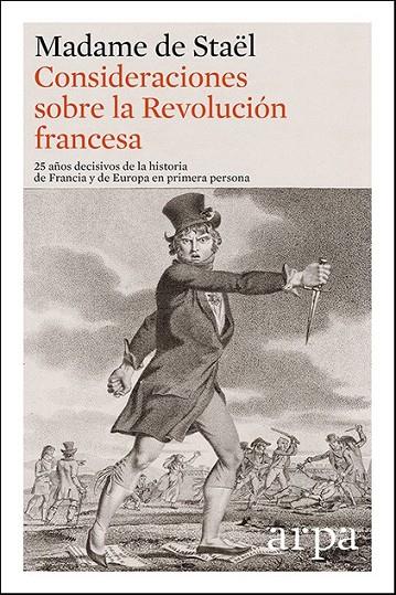 Publicadasen1818,unañodespuésdesumuerte,estasConsideracionessobrelaRevoluciónfrancesaasílodemuestran.Ellibroabarcadesdelaúltimacrisisdelantiguorégimen(1788)hastalacaídadeNapoleón(1815),ycabeconsiderarloelprimergranlibrodesutiempoenofrecerunareflexióndeconjuntosobrelossucesosrevolucionariosysusconsecuencias,prestandoespecialatenciónalaluchaporestablecerinstitucionessólidasquegaranticenlaslibertadescivilesyunequilibriodepoderesqueprevengatodotipodedictadura,yasealadeunhombreoladeunaclase.Enestesentido,MadamedeStaël,profundaadmiradoradeGranBretaña,naciónalaqueconsiderósiempreelhogardelaslibertadespolíticas,seenfrentósincontemplacionestantoalterrorjacobinocomoalautoritarismodeNapoleón.