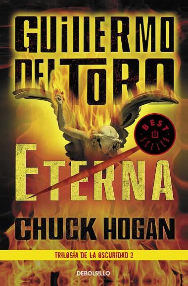 Tras Nocturna y Oscura, por fin llega Eterna, el desenlace de «Trilogía de la Oscuridad».No es una coincidencia que el Invierno Nuclear (el oscurecimiento de la Tierra durante las 24 horas del día menos una, cuando hay luz solar) haya creado un ambiente casi perfecto para los vampiros. Ellos han ganado, tienen el control del planeta y los humanos han sido finalmente dominados, encerrados en vastos campos de concentración por el mundo donde, criados como vacas, ovejas o cerdos, son alimentados y «cosechados» para el mantenimiento y placer del Master.Una red desorganizada de humanos libres, constituida por gente común, entre ellos Eph, Zack, Vassily y Gus, continúa una desesperada resistencia, interrumpiendo el devastador nuevo orden del mundo y batallando contra los Señores Vampiros en todas las ocasiones posibles. Para ganar, tienen que confiar en la intervención de una inesperada raza de seres (quienes otorgan un nuevo sentido a la frase «ángeles y ministros de la gracia defiéndannos») quienes organizan a los humanos para la última batalla, la que recupere y rehabilite el planeta para toda la humanidad.Se juega con los sobrevivientes como si fueran peones en un juego del Bien y el Mal que tiene sus orígenes en los tiempos Bíblicos, y que requiere del sacrificio final de todos los implicados.Reseñas: «Las primeras cien páginas de Oscura eran un ejercicio sostenido de terror que mantenían al lector completamente embelesado y encantado, porque Del Toro y Hogan escriben con una autenticidad tan fresca tanto sobre lo fantástico (vampiros) como sobre lo completamente real (Nueva York, con todos sus extraños recovecos). Lo que comenzó en Oscura llega a su sublime y satisfactoria conclusión en Eterna... Los héroes de dimensiones trágicas no son habituales en la ficción popular, pero Goodweather reúne todos los requisitos. El diablo está en los detalles, y esta es una lectura endiabladamente buena cuajada de sustos muy logrados.» Stephen King«El más creíble y aterrador de todos los libros de vampiros de la última década.» San Francisco Chronicle