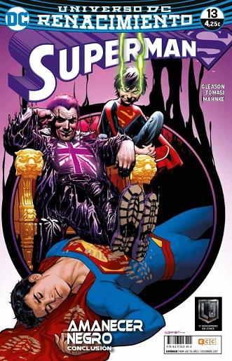 Concluye Amanecer negro. ¡Superman contra Superboy! ¡Padre contra hijo! En esta entrega especial, Jon descubre nuevas habilidades que parecen obligarle a traicionar a su mismísimo padre. ¿Quién es el verdadero villano de esta historia, capaz de separar a la Superfamilia?