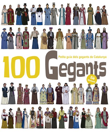 Cinquena Petita Guia dels 100 Gegants de Catalunya. A cada pàgina, hi ha una parella de gegants il·lustrats acompanyats amb informació bàsica i algun detall de la seva història.