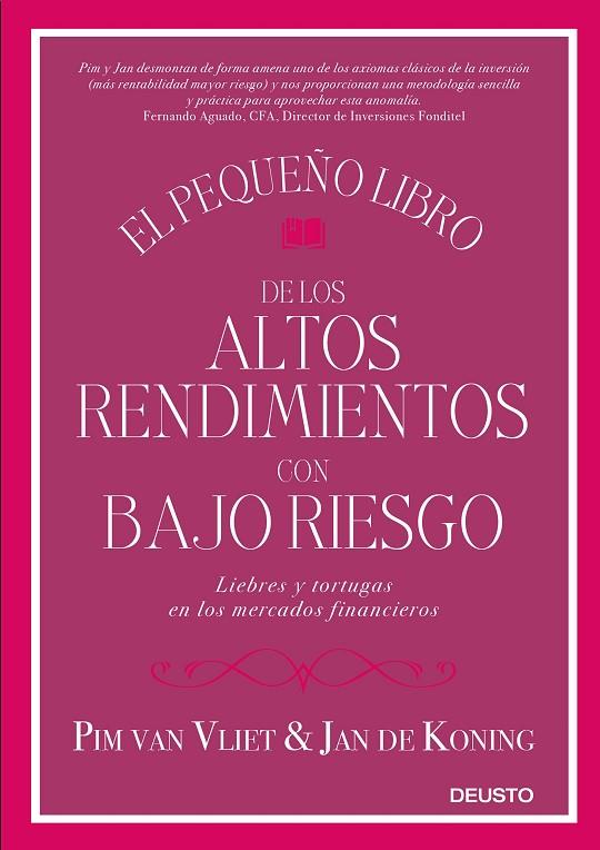Durante generaciones, los inversores han creído que el riesgo y el rendimiento son inseparables. ¿Pero es esto realmente cierto? Pim van Vliet, fundador y gestor de fondos y experto en la inversión de bajo riesgo, combina las últimas investigaciones con datos bursátiles que datan de 1929 para demostrar que la inversión en acciones de bajo riesgo ofrece rendimientos sorprendentemente altos, significativamente mejores que los generados por las acciones de alto riesgo. Escrito junto con el especialista en inversiones Jan de Koning, este libro le ayudará a construir su propia cartera de bajo riesgo, seleccionar el fondo cotizado correcto o encontrar un fondo activo de bajo riesgo para sacar provecho. También es una historia personal, que vincula nuestra naturaleza humana y comportamiento a una fórmula de inversión prudente y exitosa.