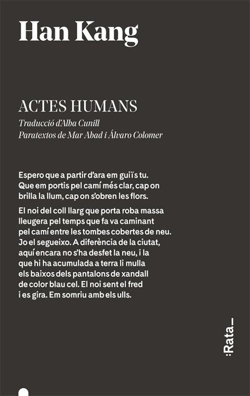 Al maig del 1980, a la ciutat de Gwangju l'exèrcit va sufocar una revolta popular provocant milers de morts. Actes humans reviu aquells fets terribles a través de les experiències de set personatges diferents: la tortura, la por, l'angoixa de no trobar els desapareguts, el dol, el sentiment de culpa del supervivent, els malsons, les ferides, les seqüeles, els retrobaments... I el record dels morts, la seva veu i la seva llum.