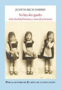 El análisis que la polémica psicóloga americana Judith Rich Harris desarrolla en No hay dos iguales parte de unas preguntas básicas: ¿por qué no hay dos personas iguales?, y ¿por qué estas incluso los gemelos educados en un mismo hogar y que comparten los mismos genes difieren en cuanto a personalidad y comportamiento? La autora, gran apasionada de novela negra, a través de una escritura amena, mordaz e irónica y, sobre todo, accesible también para los no expertos, convierte su trabajo en un verdadero trabajo de «investigación policial»: para descubrir al culpable, acumula y estudia todas las pruebas, reúne a los sospechosos, descarta las pistas falsas y llega al desenlace en su intento por solucionar el insondable misterio de la individualidad y de la naturaleza humanas.