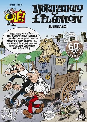 Número 200 de la colección «Olé Mortadelo», la más longeva hasta la actualidad. ¡Los recortes del Gobierno también han llegado a la T.I.A.! Y los trabajadores no están dispuestos a aceptarlos... Los recortes sociales efectuados por el Gobierno español no solo han afectado a la población en general, sino que también han hecho lo suyo en la T.I.A., de forma que esta ha visto una reducción significativa de sus fondos. Debido a las sospechas existentes de que determinadas personas están provocando disturbios, Mortadelo y Filemón tendrán que ir a la búsqueda de dichos tumultuosos, identificarlos y detenerlos con el fin de frenar las revueltas. ____________________________________________________ Sobre la colección: La colección «Olé!» nació en 1971 en Bruguera y se convirtió rápidamente en uno de los mayores éxitos de la editorial. Hoy en día todavía puede presumir de ser una de las colecciones más longevas del mercado nacional del cómic. En sus orígenes, «Olé!» recopilaba aventuras cortas y contenía una gran variedad de personajes del gran fondo de cómic de Bruguera: desde los principales personajes de Ibáñez, Vázquez y Escobar, hasta los inolvidables Sir Tim O´Theo de Raf, Don Pío y Gordito Relleno de Peñarroya, Agamenón de Nené Estivill, Rigoberto Picaporte de Robert Segura, Deliranta Rococó de Martz Schmidt, entre otros. En la actualidad, en «Olé!» se publican las novedades de Mortadelo y Filemón que han aparecido previamente en la colección «Magos del Humor».