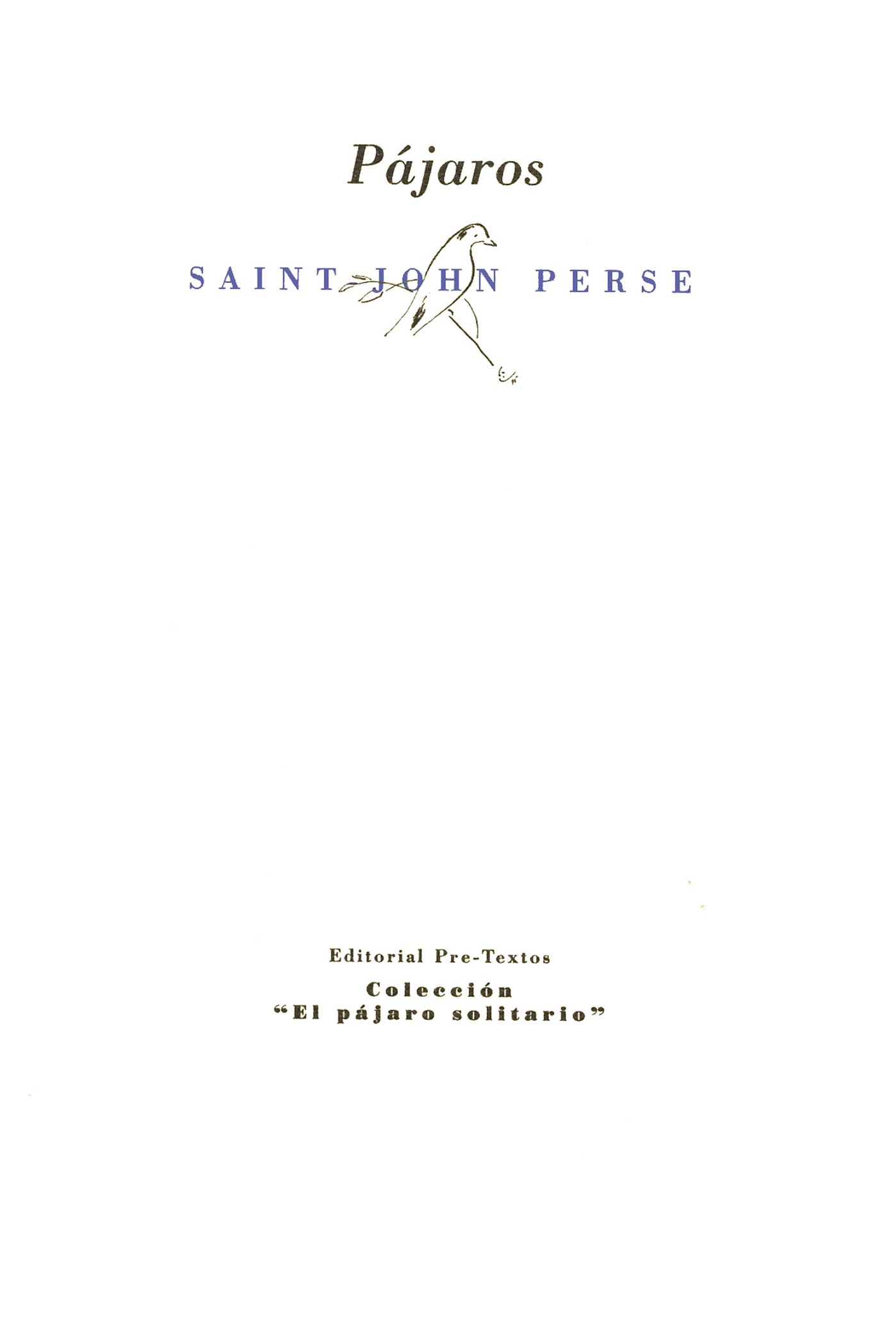 En 1910 un joven poeta, oculto bajo el sonoro pseudónimo de Saint-John Perse, recibía en su casa de las Antillas las primeras pruebas de un texto que, enviado como regalo personal a André Gide, éste se había apresurado a editar en "La Nouvelle Revue Française". El escrito, titulado Cohorte, festejaba en largas secuencias el vuelo y las especies de los pájaros de ultramar, los pájaros exóticos de las colonias. Pero había sido compuesto sólo en calidad de diversión, "por placer, por el gesto solemne y sin intención literaria".
