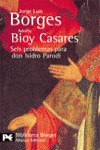 Amantes del género policial, Jorge Luis Borges y Adolfo Bioy Casares dieron cauce de expresión a las inquietudes y solaces fruto de su común afición en los singulares relatos que toman como eje a un «detective» o investigador no menos singular: Isidro Parodi, «el penado de la celda 273» de la Penitenciaría Nacional, que resuelve los casos que le plantean sin moverse de ella. Publicado en 1942 bajo el pseudónimo común de H. Bustos Domecq, SEIS PROBLEMAS PARA DON ISIDRO PARODI está integrado por seis piezas que, pese a ser completamente independientes, van desplegando en un segundo plano ante el lector todo un elenco de personajes que, sometidos a un baño de humor corrosivo que les imprime rasgos y aires propios de «grand guignol», sirven de articuladores de unas tramas que hunden su raíz en la mejor tradición del cuento de misterio.