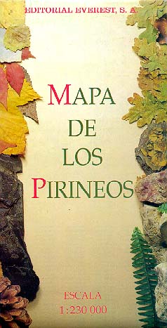 Detallado mapa de la zona ocupada por los Pirineos y completo índice toponímico.
