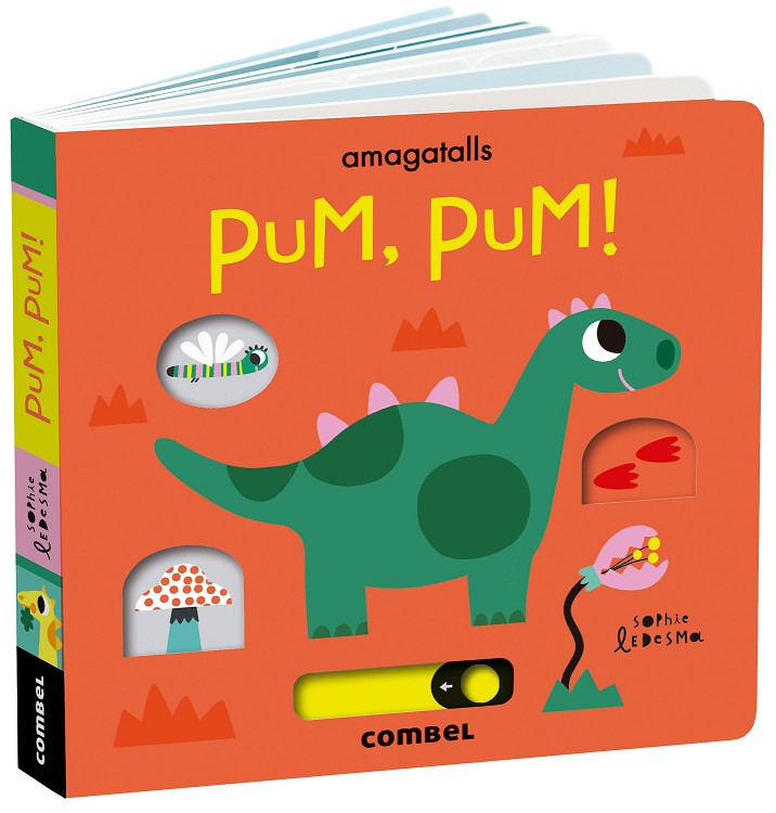Pum, pum!, qui hi ha? amb qui vol jugar el Dino? Un llibre tot cartró, de solapes i mecanismes mòbils sobre els dinosaures.
