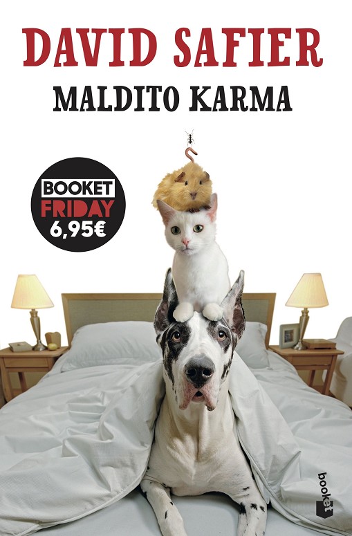 Maldito karma, con más de 500.000 ejemplares vendidos en España, es una entrañable fábula que, entre carcajadas, nos ayuda a reflexionar sobre las prioridades de nuestra vida. La presentadora de televisión Kim Lange está en el mejor momento de su carrera cuando sufre un accidente y muere aplastada por el lavabo de una estación espacial rusa. En el más allá, Kim se entera de que ha acumulado mal karma a lo largo de su vida: ha engañado a su marido, ha descuidado a su hija y ha amargado a cuantos la rodeaban. Pronto descubre cuál es su castigo: está en un agujero, tiene dos antenas y seis patas… ¡Es una hormiga! Kim no tiene ganas de ir arrastrando migas de pastel tras haber eludido los hidratos de carbono toda su vida. Además, no puede permitir que su marido se consuele con otra. Sólo le queda una salida: acumular buen karma para ascender por la escalera de la reencarnación y volver a ser humana. Pero el camino para dejar de ser un insecto y convertirse en un bípedo es duro y está plagado de contratiempos. «No acumularás buen karma, pero pasarás un gran rato en esta vida leyendo una excelente comedia.» Elle