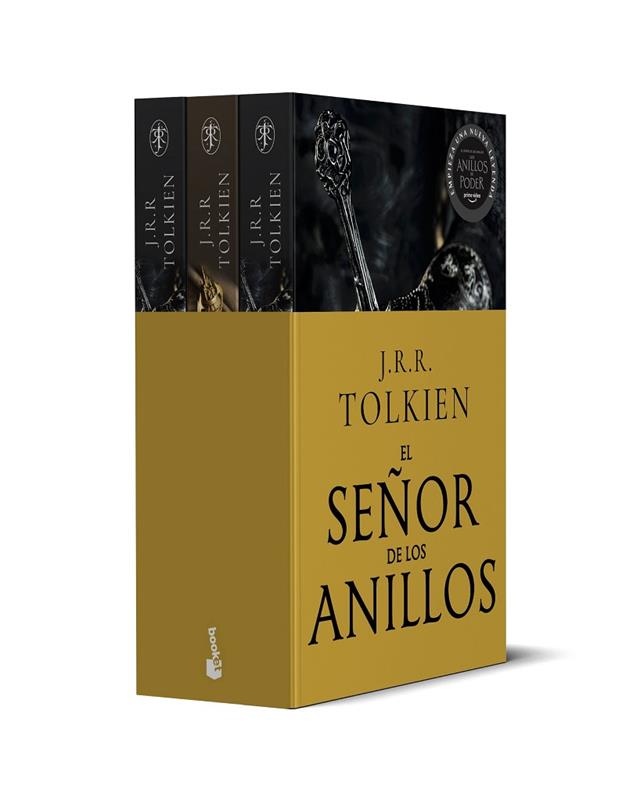 El pack incluye: La Comunidad del Anillo, Las Dos Torres y El Retorno del Rey, con nuevas cubiertas basadas en la estética de la nueva serie El señor de los anillos. Los Anillos de Poder. La Comunidad del Anillo: En la adormecida e idílica Comarca, un joven hobbit recibe un encargo: custodiar el Anillo Único y emprender el viaje para su destrucción en la Grieta del Destino. Acompañado por magos, hombres, elfos y enanos, atravesará la Tierra Media y se internará en las sombras de Mordor, perseguido siempre por las huestes de Sauron, el Señor Oscuro, dispuesto a recuperar su creación para establecer el dominio definitivo del Mal. Las Dos Torres: La Compañía se ha disuelto y sus integrantes emprenden caminos separados. Frodo y Sam avanzan solos en su viaje a lo largo del río Anduin, perseguidos por la sombra misteriosa de un ser extraño que también ambiciona la posesión del Anillo. Mientras, hombres, elfos y enanos se preparan para la batalla final contra las fuerzas del Señor del Mal. El Retorno del Rey: Los ejércitos del Señor Oscuro van extendiendo cada vez más su maléfica sombra por la Tierra Media. Hombres, elfos y enanos unen sus fuerzas para presentar batalla a Sauron y sus huestes. Ajenos a estos preparativos, Frodo y Sam siguen adentrándose en el país de Mordor en su heroico viaje para destruir el Anillo de Poder en las Grietas del Destino.