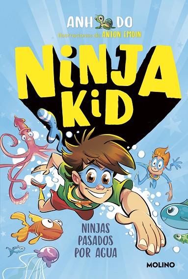 ¡Descubre al ninja que llevas dentro con el héroe más divertido! ¡Estos ninjas van a darse un buen chapuzón! Hay entradas disponibles para visitar el alucinante acuario nuevo y ¡Nelson y Kenny solo tienen que ganar una competición de natación para conseguirlas! Lástima que nadar se les dé tan mal: ¡parecen sacados de la piscina de los peques! ¡¿Podrá el último y alucinante invento de la abuela transformar a estos dos ninjas en remojo en auténticos peces ninja?!