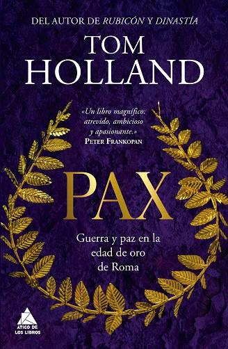 Durante mucho tiempo, la Pax Romana se ha venerado como una edad de oro. En su apogeo, el Imperio romano se extendía desde Escocia hasta Arabia, y en él vivía en torno a una cuarta parte de la humanidad. Era el Estado más rico y formidable que el mundo había visto hasta entonces. Pax narra la deslumbrante historia de una Roma en la cúspide de su poder, historia que comienza en el 69 d.?C., cuando cuatro césares gobernaron el imperio en fugaz sucesión, y termina siete décadas más tarde, con la muerte de Adriano. Desde el brillo de la capital hasta los reinos allende las fronteras romanas, el célebre historiador Tom Holland retrata el imperio en todo su esplendor. Asistiremos absortos a un desfile de espectaculares e impactantes escenas, como la destrucción de Jerusalén y Pompeya, la construcción del Coliseo o las conquistas de Trajano. Holland hace que los romanos cobren vida ante nuestros ojos, desde el más humilde esclavo hasta el emperador, y muestra cómo la prosperidad de la paz romana se construyó también gracias al poder sin precedentes de las legiones. Un impresionante retrato de los días de gloria de Roma: esta es la épica historia de la Pax Romana.