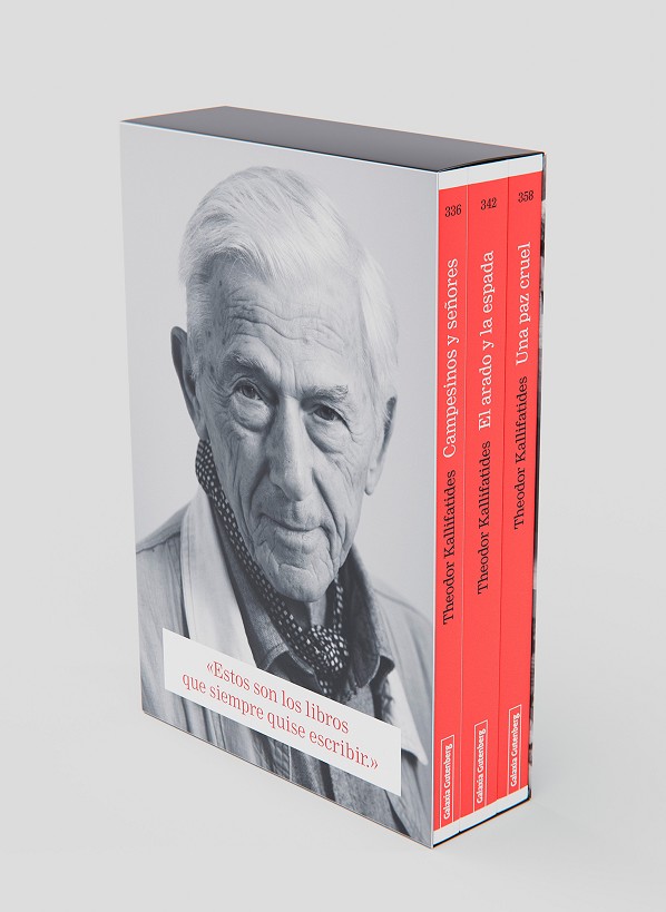 Las obras que encumbraron a Theodor Kallifatides como uno de los grandes escritores europeos de la segunda mitad del siglo xx fueron sus tres novelas Campesinos y señores (1973), El arado y la espada (1975) y Una paz cruel (1977), que ahora se traducen por primera vez al español. Con ellas, Kallifatides retrató su infancia y su adolescencia y a la vez el período más trágico de la historia contemporánea de Grecia, el que va desde que los nazis invaden el país en 1941 hasta el fin de la guerra civil griega en 1949, y la miseria de la posguerra en un país devastado.