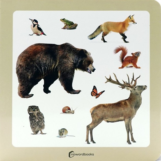 En aquest llibre, diferents animals del bosc van apareixent de dos en dos a mesura que es passen les pàgines, fins a completar 10 imatges de 10 animals.Permet treballar aspectes com la discriminació visual i la noció de quantitat. Fotografies de: Ratolí, Papallona, Esquirol, Ocell, Guineu, Cérvol, M...
