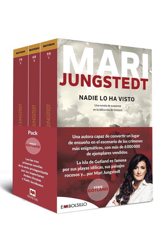 La isla de Gotland es famosa por sus playas idílicas, sus paisajes rocosos y... por Mari Jungstedt. Una autora capaz de convertir un lugar de ensueño en el escenario de los crímenes más enigmáticos.Lee las tres primeras novelas de la serie y descubre por qué Mari Jungstedt se ha convertido en una de las autoras de novela negra más aclamadas, con más de 6 000 000 de ejemplares vendidos:Nadie lo ha vistoLa primera entrega de la exitosa serie de Gotland, protagonizada por Anders Knutas y Johan Berg. Un peligroso asesino se esconde en la niebla y cualquiera puede ser su próxima víctima.Nadie lo ha oídoBajo la reluciente fachada de la sociedad se esconde un mundo oscuro y depravado, que Mari Jungstedt nos invita a visitar.Nadie lo conoceUna nueva entrega y un nuevo éxito de una auténtica novela negra escandinava sobre ritos ancestrales y crímenes sangrientos.