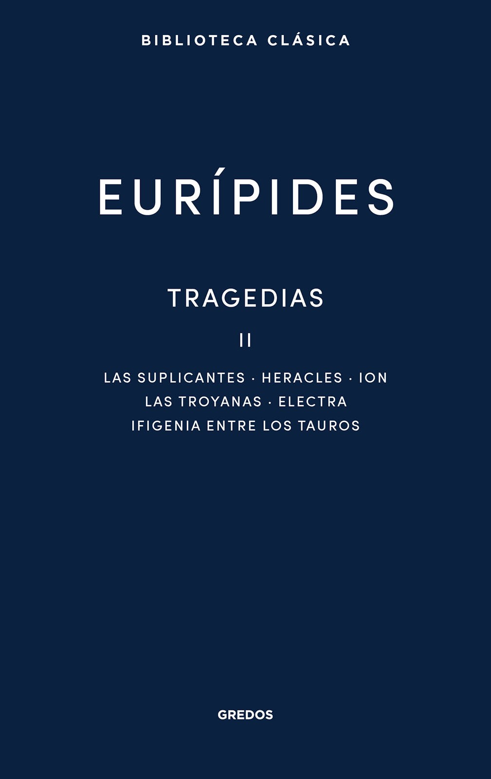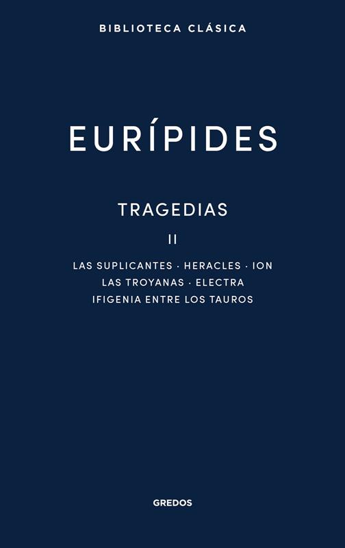 Eurípides es el más inquieto y apasionado de los tres grandes autores trágicos griegos. Seguramente también es el más influyente, gracias a su sensibilidad poética, más cercana a la actual. A diferencia de Esquilo y Sófocles, que le precedieron, Eurípides humaniza y dota de carácter realista al mito, da rienda suelta a los arrebatos poéticos, a la vez que también se muestra muy racionalista. En este contraste contradictorio radica parte de su encanto y de su modernidad. El segundo tomo de las tragedias completas de Eurípides en la Biblioteca Clásica reúne las obras: Las suplicantes, Heracles, Ion, Las troyanas, Electra e Ifigenia entre los tauros.