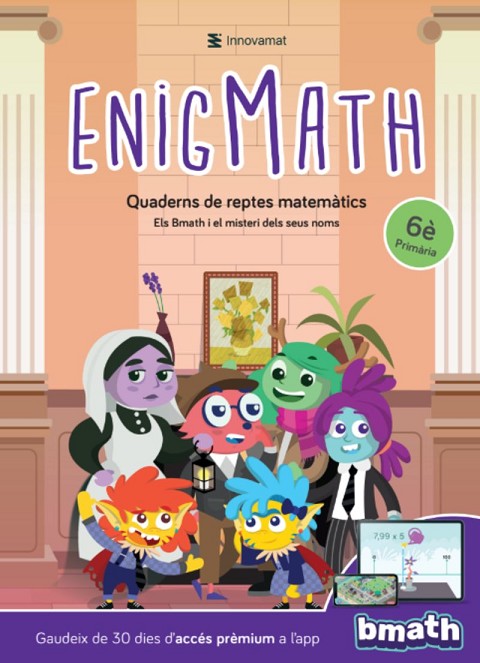 Els Bmath i el misteri dels seus nomsAl quadern Enigmath d’Innovamat els més petits s'enfrontaran a reptes matemàtics amb continguts de 6è de primària. Més de 60 pàgines d'activitats que fomenten la capacitat de raonar, connectar idees, comunicar-les i resoldre problemes.