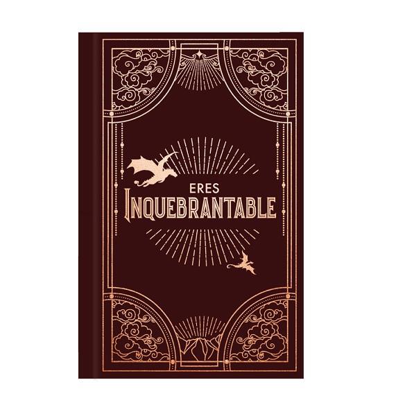 El cuaderno oficial del segundo libro de la serie Empíreo.Después del éxito del Journal de Alas de sangre, llega esta espectacular libreta inspirada en el segundo libro del fenómeno editorial mundial Empíreo, Alas de hierro. Con un contenido más enriquecido que el primer volumen, incluye una selección de las frases icónicas de la obra que los auténticos fans contextualizarán en seguida, unas páginas de planificación personal, un calendario para anotar eventos y un práctico book tracker para llevar un registro de todo lo que lees. Una pequeña joya a la que cualquier admirador de esta colección nacida del talento de Rebecca Yarros le cogerá un gran cariño. Usa el cuaderno para anotar tus frases preferidas, posibles giros o pistas que intuyas o, teorías que se te ocurran o simplemente sírvete de ella como diario personal. Este precioso accesorio de papelería consta de 240 páginas con secciones pautadas con rayas y puntos y una lujosa cubierta está decorada con detalles deslumbrantes estampados en dorado. ¡El regalo perfecto para cualquier fan de Xaden, Violet, Andarna y Tairn! Características: Formato: 12,7 x 20,3 cm. 240 páginas. Encuadernación cartoné con stamping en dorado. Interior con pauta de secciones de pauta y de puntos.