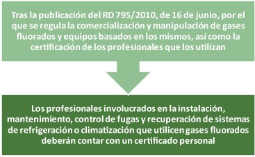 El pasado mes de junio se publicó el RD 795/2010 por el que se regula la comercialización y manipulación de gases fluorados y equipos basados en los mismos, así como la certificación de los profesionales que los utilizan.